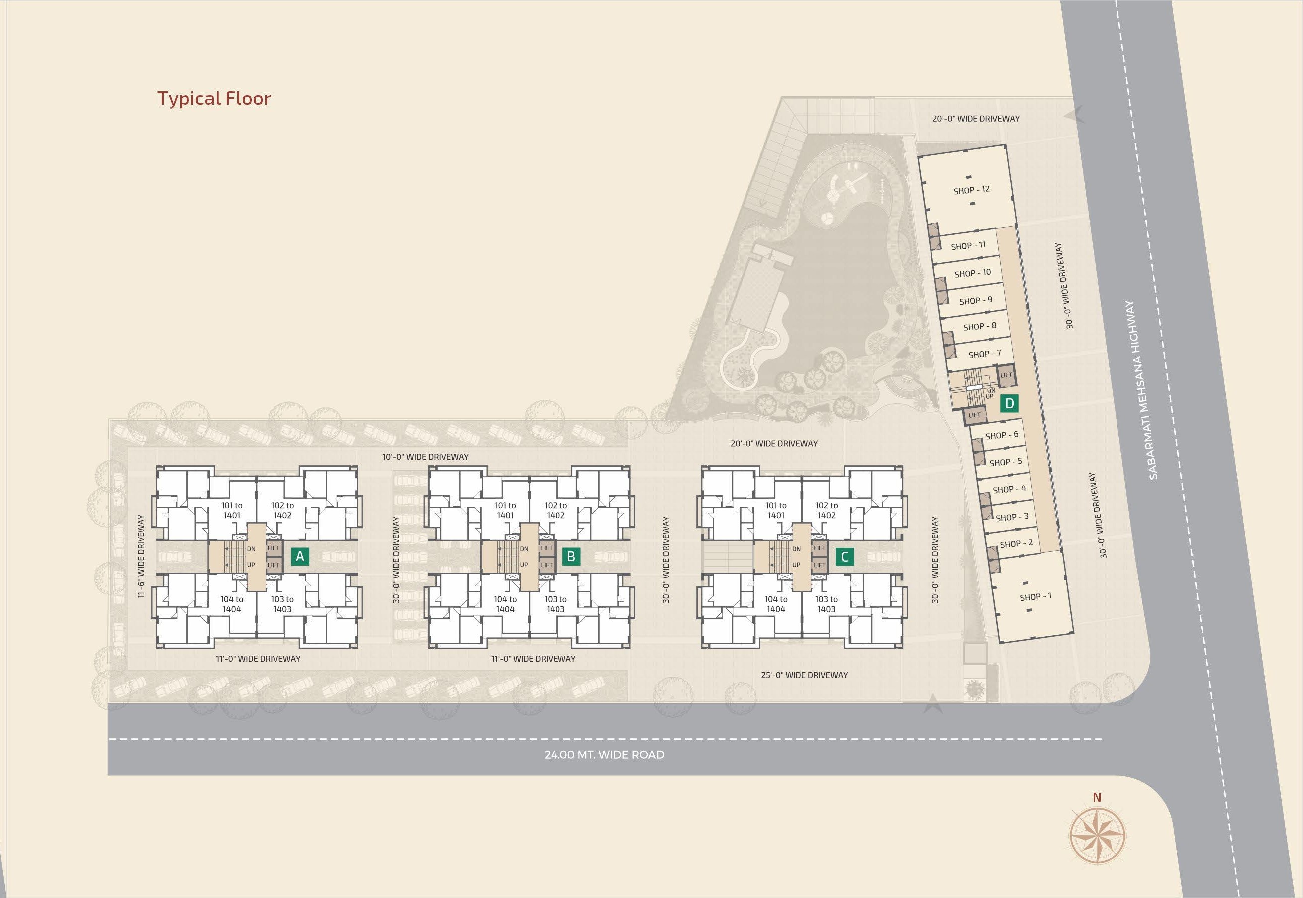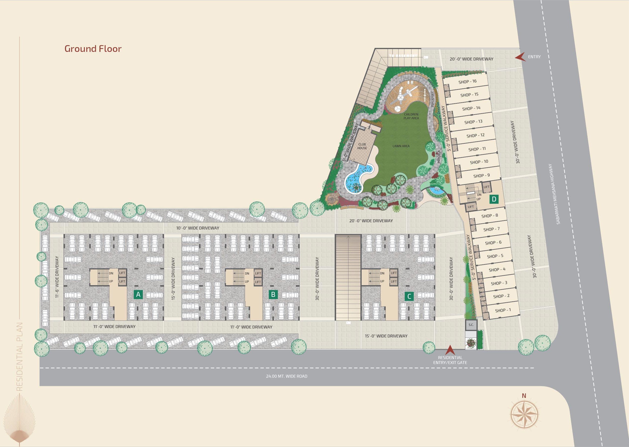 Nirmaan Satva is a project designed to elevate everyday living. Offering both commercial and residential properties, each space is thoughtfully crafted to showcase its distinct character and aesthetic appeal. Nestled amidst lush greenery and set alongside a future-developed scenic lake, Nirmaan Satva enjoys a prime location at the crossroads of major routes connecting Ahmedabad, Gandhinagar, and Mehsana. Experience the perfect blend of natural beauty and strategic accessibility at Nirmaan Satva.